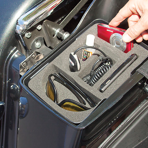 Caracteristicas: High-density foam kit for universal saddlebag tray Pre-perforated every 1/2" to custom fit cell phones, goggles, glasses and other accessories Made in the U.S.A.