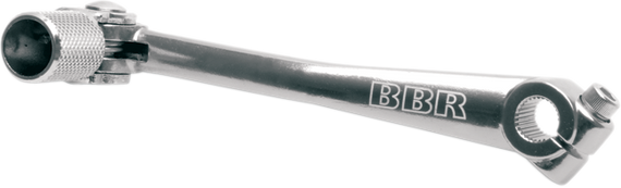 Caracteristicas: Strong forged aluminum construction Steel knurled folding tip (chrome plated) Replace the stock steel lever, saving weight and improving function Anodized titanium finish Laser etched BBR logo