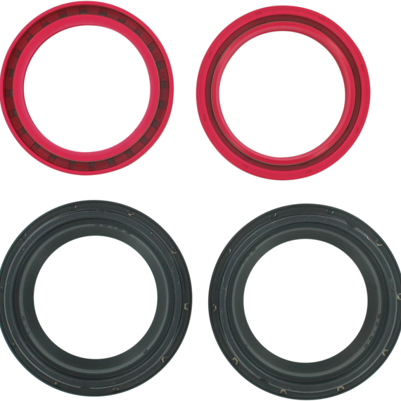 Caracteristicas: Seal profile is engineered to create equal pressure in each seal lip; equalized seal pressure creates less drag and longer seal life Patented MAX-LIFE has a coefficient of friction up to 3 times less than the OEM seal material Triple-lip seal design Dyno-tested to last 3 to 4 times longer than OEM seals Directional ribs allow seal to be installed easily Kits include fork seals and dust wipers