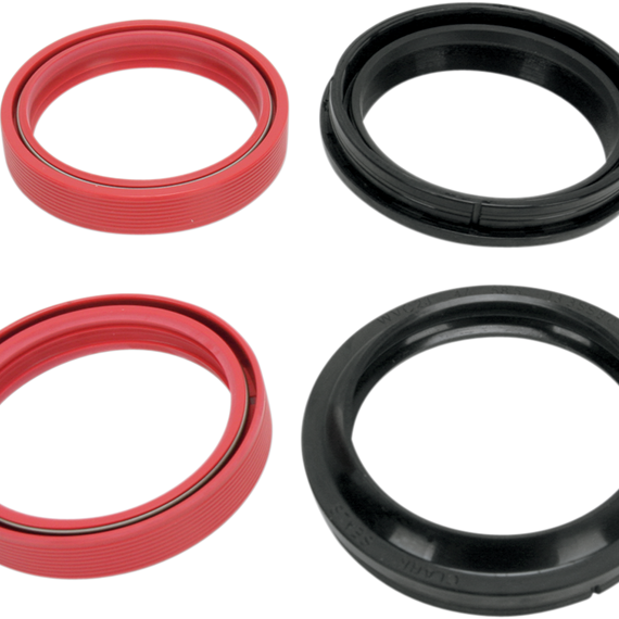 Caracteristicas: Seal profile is engineered to create equal pressure in each seal lip; equalized seal pressure creates less drag and longer seal life Patented MAX-LIFE has a coefficient of friction up to 3 times less than the OEM seal material Triple-lip seal design Dyno-tested to last 3 to 4 times longer than OEM seals Directional ribs allow seal to be installed easily Kits include fork seals and dust wipers