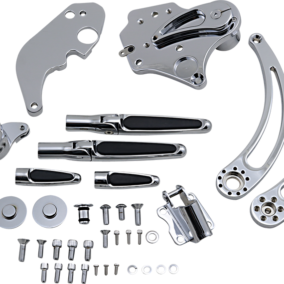 Forward Control - '14+ FLH - Chrome - Extended - Folding Rubber Inlay Pegs - Slotted Lever