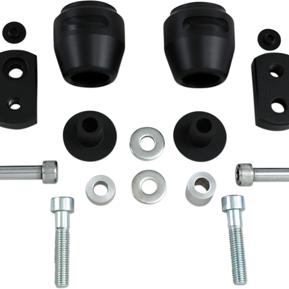 Caracteristicas: V3 2.0 frame sliders are equipped with controlled flexion areas The intelligent protection system design ensures that the slider bends in a certain position; no force will be put either to the frame of the motorcycle or to the engine body The screws are chosen according to the appropriate, diversified durability; they ensure that the protection system bends in exactly defined position and no force is put on the original parts of the motorcycle Strong aluminum elements guarantee high endurance of the whole protection system; the surface is anodized or matte varnished to avoid corrosion The sliders are made of highly durable material which absorbs the energy in case of fall; plastic is carefully chosen in order to absorb the energy of the hit and allow safe decrease of speed All parts for the 2.0 frame sliders are processed with CNC high-speed machines; each set fits the particular model of the motorcycle No extra parts are necessary to assemble the product; each set includes detailed assembly instructions with images of every single spare part Made in the U.S.A.