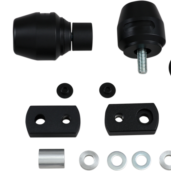 Caracteristicas: V3 2.0 frame sliders are equipped with controlled flexion areas The intelligent protection system design ensures that the slider bends in a certain position; no force will be put either to the frame of the motorcycle or to the engine body The screws are chosen according to the appropriate, diversified durability; they ensure that the protection system bends in exactly defined position and no force is put on the original parts of the motorcycle Strong aluminum elements guarantee high endurance of the whole protection system; the surface is anodized or matte varnished to avoid corrosion The sliders are made of highly durable material which absorbs the energy in case of fall; plastic is carefully chosen in order to absorb the energy of the hit and allow safe decrease of speed All parts for the 2.0 frame sliders are processed with CNC high-speed machines; each set fits the particular model of the motorcycle No extra parts are necessary to assemble the product; each set includes detailed assembly instructions with images of every single spare part Made in the U.S.A.