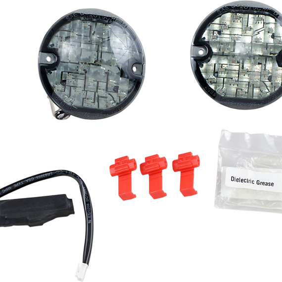 Caracteristicas: Turn signal inserts have LED boards with stylish Küryakyn lenses Plug-and-play installation; just remove the stock lens and bulb, plug in the LED board and install the new lens Front turn signal LEDs have amber illumination, rear turn signal LEDs have red illumination Include load equalizer Not DOT compliant.