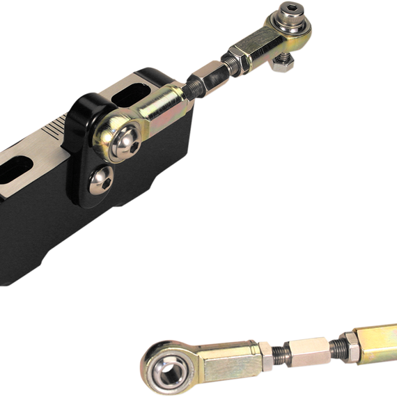 Caracteristicas: Allows all Dresser riders to correct chassis misalignment, which is impossible to achieve with the stock motor mount Billet aluminum bracket replaces the forged front engine bracket Equipped with slots for the engine bolts and a series of hash marks, the motor is now able to move right or left in the frame and achieve perfect power train alignment Adjustable stabilizing link has been added to the bracket that attaches to a convenient frame lug Made in the U.S.A.