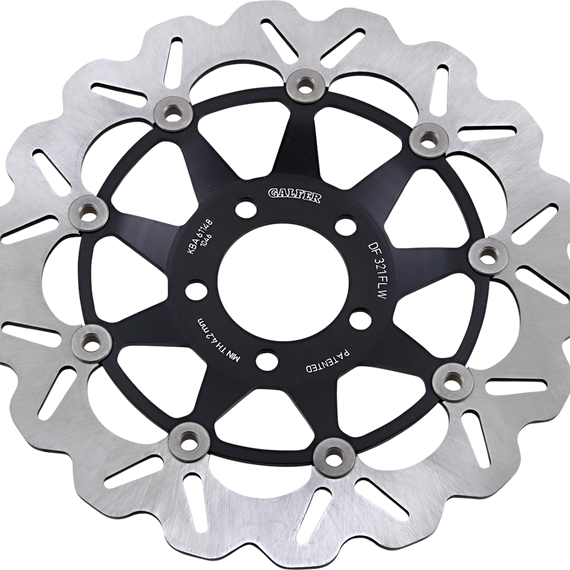 Caracteristicas: Laser-cut double disc ground 420 high carbon stainless steel Direct-replacement brake rotors; do not require any extra parts, bolt on just like a stock brake disc Full-floating design rotors have an aluminum center carrier Improves brake lever feel and modulation Rotors cool as they rotate to lower brake operating temperatures Design is self-cleaning, removes water as it rotates Less tendency to warp Manufactured in Spain For maximum braking performance and rotor longevity, Galfer recommends using Galfer brake pads with Galfer rotors.