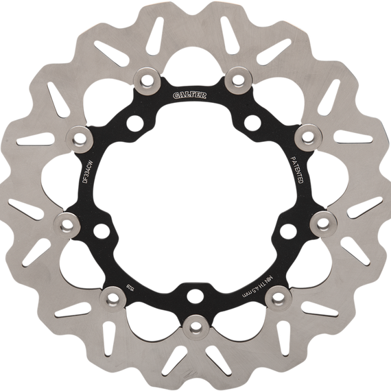 Caracteristicas: Laser-cut double disc ground 420 high carbon stainless steel Direct-replacement brake rotors; do not require any extra parts, bolt on just like a stock brake disc Full-floating design rotors have an aluminum center carrier Improves brake lever feel and modulation Rotors cool as they rotate to lower brake operating temperatures Design is self-cleaning, removes water as it rotates Less tendency to warp Manufactured in Spain For maximum braking performance and rotor longevity, Galfer recommends using Galfer brake pads with Galfer rotors.