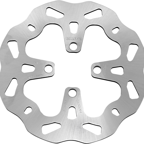 Caracteristicas: Laser-cut double disc ground 420 high carbon stainless steel Direct-replacement brake rotors; do not require any extra parts, bolt on just like a stock brake disc Full-floating design rotors have an aluminum center carrier Improves brake lever feel and modulation Rotors cool as they rotate to lower brake operating temperatures Design is self-cleaning, removes water as it rotates Less tendency to warp Manufactured in Spain For maximum braking performance and rotor longevity, Galfer recommends using Galfer brake pads with Galfer rotors.