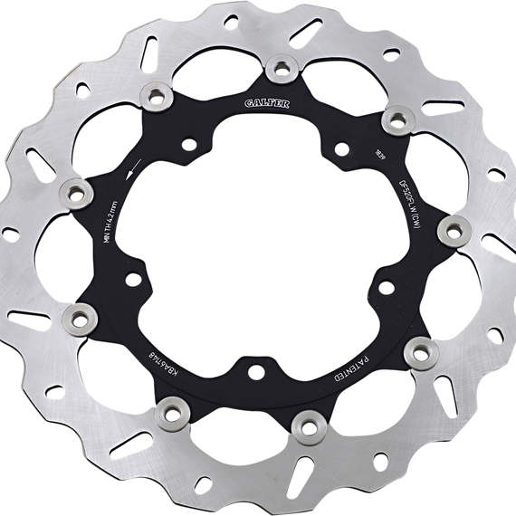 Caracteristicas: Laser-cut double disc ground 420 high carbon stainless steel Direct-replacement brake rotors; do not require any extra parts, bolt on just like a stock brake disc Full-floating design rotors have an aluminum center carrier Improves brake lever feel and modulation Rotors cool as they rotate to lower brake operating temperatures Design is self-cleaning, removes water as it rotates Less tendency to warp Manufactured in Spain For maximum braking performance and rotor longevity, Galfer recommends using Galfer brake pads with Galfer rotors.