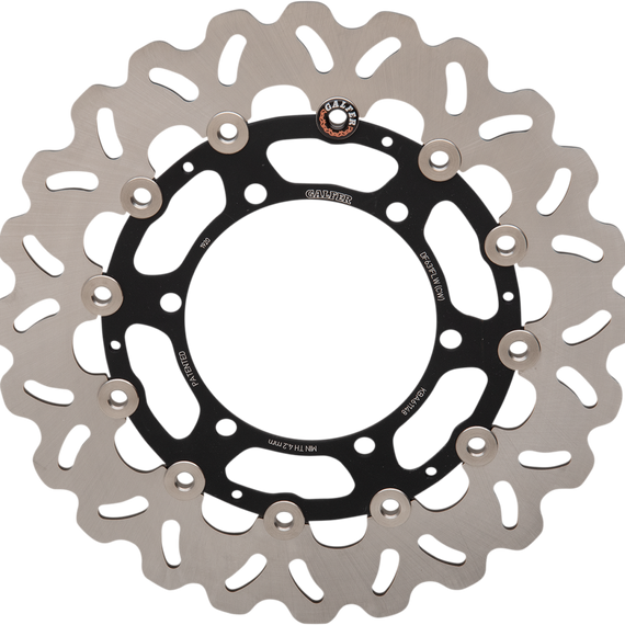 Caracteristicas: Laser-cut double disc ground 420 high carbon stainless steel Direct-replacement brake rotors; do not require any extra parts, bolt on just like a stock brake disc Full-floating design rotors have an aluminum center carrier Improves brake lever feel and modulation Rotors cool as they rotate to lower brake operating temperatures Design is self-cleaning, removes water as it rotates Less tendency to warp Manufactured in Spain For maximum braking performance and rotor longevity, Galfer recommends using Galfer brake pads with Galfer rotors.