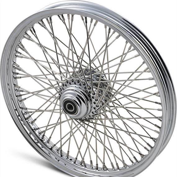 Caracteristicas: Chrome billet aluminum hubs with polished stainless steel spokes and polished stainless steel nipples Wheels come completely assembled and are trued to less than .005" runout Made in the U.S.A. by RideWright Wheels Classic, tube-type spoke design Chrome-plated steel rims DOT approved