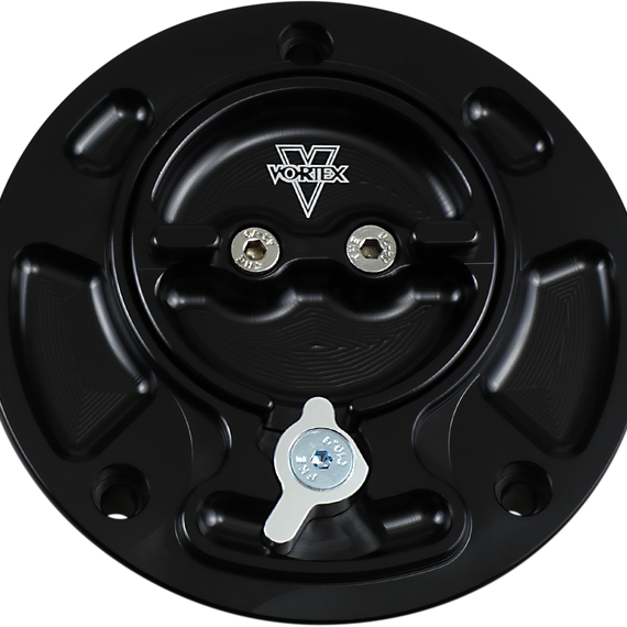 Caracteristicas: Coarse thread enables quick closure without cross-threading Large contoured finger tabs allow for easier opening compared to classic Vortex design Safety lock switch prevents accidental cap loosening due to vibration or contact Integrated dual check valve assembly eliminates fuel tank pressure issues Vent and chamber design helps stop leaks by containing any fuel that gets past the check valve Up to 55% lighter than stock keyed fuel tank caps Comes standard with silver lock switch Made in the U.S.A.