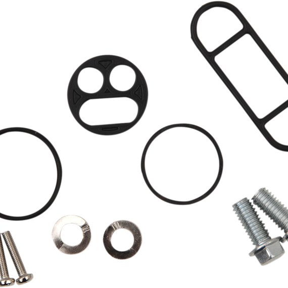 Caracteristicas: Includes components to rebuild one Fuel Tap Kits includes all necessary face screws, tank bolts, face gasket, tank gasket, diaphragm, o-rings, wave washer, and misc components Non re-buildable riveted Honda specific Kits include special drill and self-taping screws along with instructions for easy and inexpensive rebuild