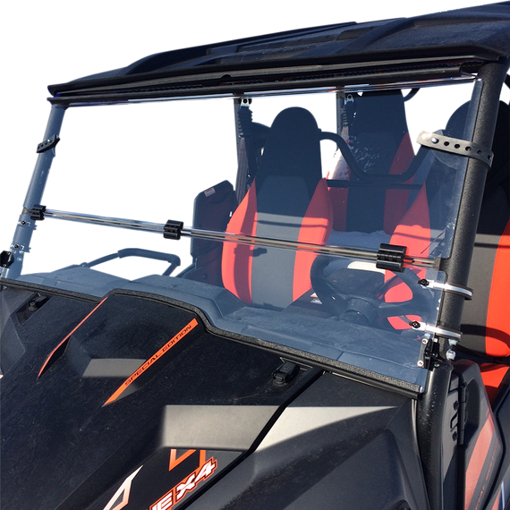 Caracteristicas: Made from premium .177" thick polycarbonate shield Centrally hinged for ventilation Tool-less operation Mounts to the roll bar using stainless steel rubber coated mount straps Windshields feature a rubber seal to help keep the elements out; replacement kit with 6' rubber seal available separately Made in the U.S.A.