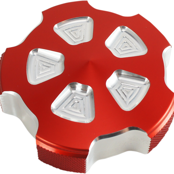 Caracteristicas: Unique "knurled & cut-out" profile design enables superior install and removal ease CNC-machined billet aluminum construction with anodized plating Special fuel resistant gasket seal included. Made in the U.S.A.