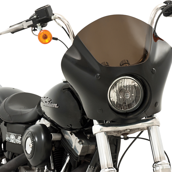 Caracteristicas: Gauntlet Fairing is a unitized quarter fairing with a matte black finish inside Class A gloss black finish outside Smoked windscreen ABS headlight bezel "Factory" finish looks great as is or can easily be painted to really achieve the next level of custom Custom fit, model-specific mounting kits feature Memphis Shades exclusive Trigger-Lock mounting system - on and off without tools, or if you already have a Memphis Fats/Slim windshields, Sportshields or Batwing Fairing simply purchase a plate-only mount kit to mount the fairing