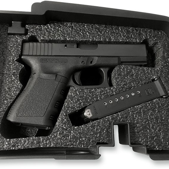 Caracteristicas: Die-cut perforated foam designed to fit at least nine different configurations of Glock® (G17, G19, G21, G22, G25, G31, G32, G37, G38) and 9mm, 10mm, .40, .45, .380 and .357 clips Secure and lock your pistol and clip May fit other brands of pistols with minor foam trim modifications Includes foam conceal cover; sold each Made in the U.S.A. This product may not be legal for sale or use in all states. Please check applicable laws.