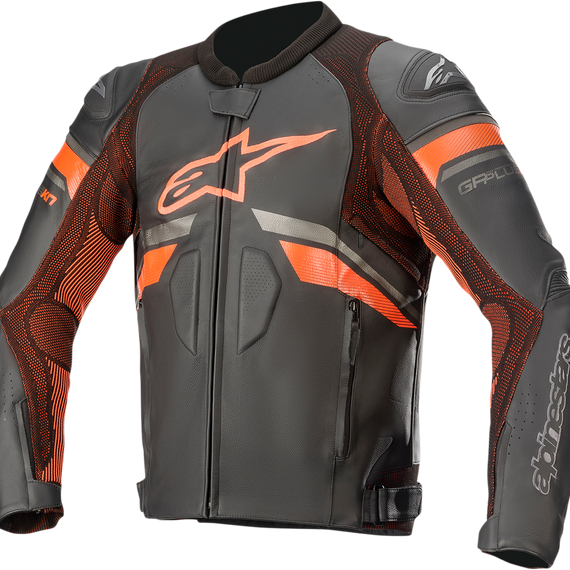 GP Plus R v3 Rideknit® Leather Jacket - Black/Red Fluo - US 42 / EU 52
