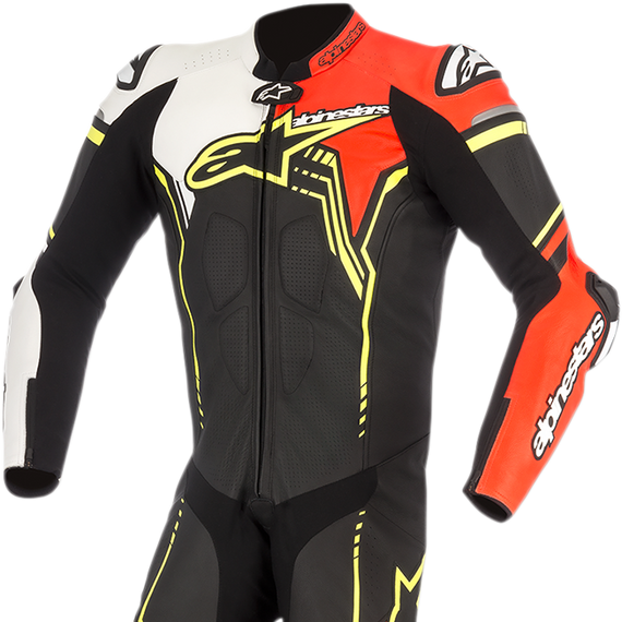 GP Plus v2 1-Piece Leather Suit - Black/White/Red Fluorescent/Yellow Fluorescent - US 48 / EU 58
