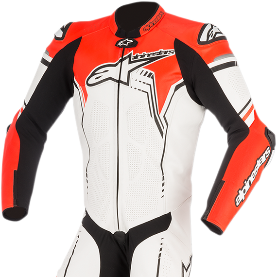 GP Plus v2 1-Piece Leather Suit - White/Black/Red Fluorescent - US 42 / EU 52