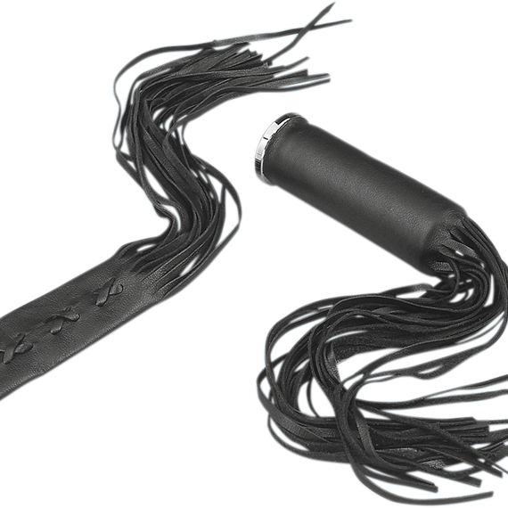 • Black leather grip covers with 12" long fringe for grips on 1" bars