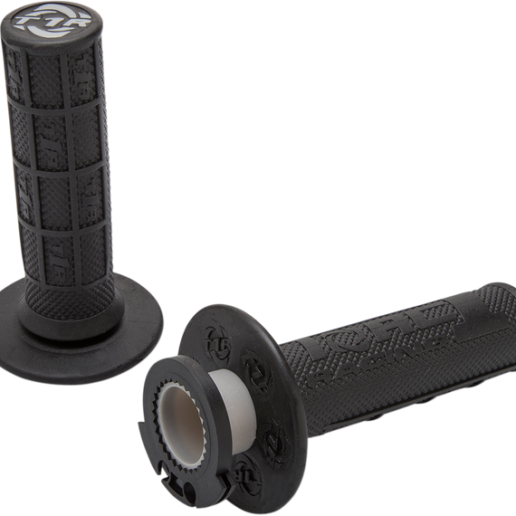 Caracteristicas: Half-waffle pattern contours to the hand and provides thumb relief 100% slip free performance guaranteed Simple installation without waiting for glue to dry OEM spec throttle tube included with 22 point adjustment to put the waffle pattern right where you need it 6 snap-on multi adjust throttle cams included in each 4-stroke or 2-stroke/mini bike kit No need to purchase any throttle cams separately CNC-machined aluminum locking collar with Torx T15 stainless bolt helps resist stripping and corrosion Race tested diameter with a soft, tacky compound provides the ultimate in feel and control Tapered waffle pattern helps contour to your hand and provides thumb relief Grip donut groove helps keep grip donut flat and in place if needed Knockout ends easily to accommodate wrap-around handguards 2-Stroke kits include mini bike cams for 50's, 65's, 85's, and KLX110