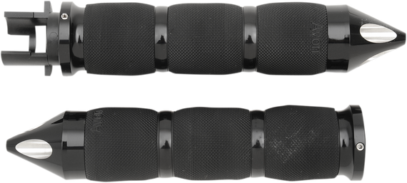 Caracteristicas: Made in the USA Core bar creates air pockets inside the grip body to dampen vibrations Soft, serrated, no-slip texture on the grip surface 6061 anodized Spike end caps and collars