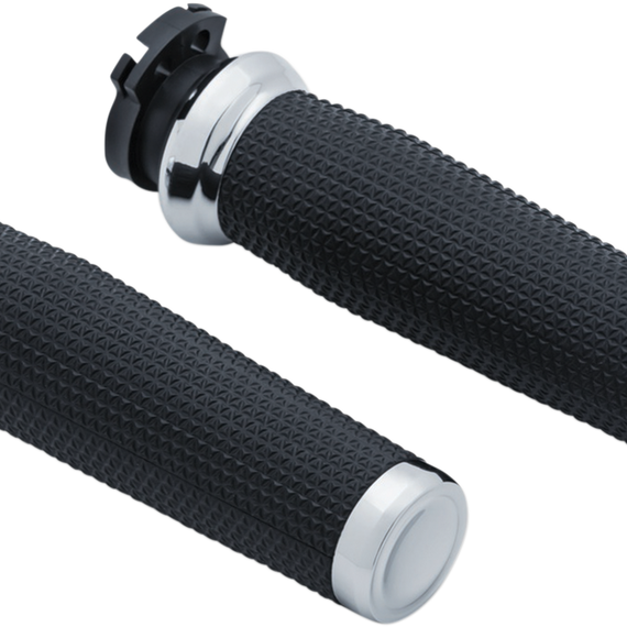 Caracteristicas: Thresher Grips combine a soft shark tooth-inspired knurled rubber texture with an ergonomic profile that contours to the shape of your hands for unbeatable comfort and control Feature a wider diameter for thumb, index and middle fingers and a tapered outer profile for ring and pinky fingers Premium, durable EPDM rubber compound will not harden, crack or wear over time and provides an ultra soft, cushiony feel for all-day vibration dampening comfort Assembled with OEM-specific throttle tube and feature a “glueless” clutch grip offering easy installation or removal for handlebar swaps Unique shark tooth knurling provides awesome grip and distinct styling