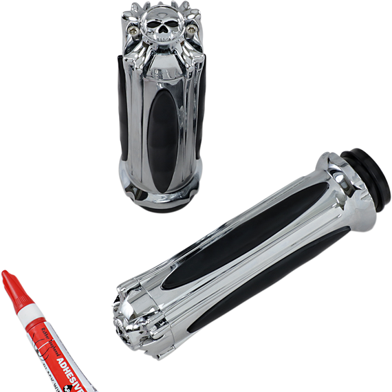 Caracteristicas: Wicked looks, wicked comfort Grip bodies are smooth chrome with vibration-absorbing rubber inserts Zombie end caps enhance the look Premium Zombie Grips include Throttle Boss