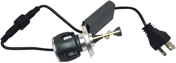 Caracteristicas: Replaces all H4-style headlight bulbs Uses stock reflector and bulb housing 6000K (6000 Kelvin) daylight white (not yellow) light beam with no blue tint Built-in ballast with active heat-management fan Offers a super bright 2000 lumen LED output (versus standard H4 lumen output of 800-1200 lumens) Draws less than 1 amp compared to stock bulb at 5 amps Easy do-it-yourself plug-and-play installation 20,000 hour bulb life DOT compliant.