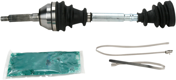 Caracteristicas: Half wheel shaft kit includes outboard joint, shaft, inboard boot, clamps and grease Come assembled and ready to install after inboard joint kit is installed