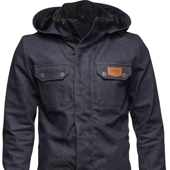 Caracteristicas: Vintage inspired design Classic fit with ride function Premium 2-way stretch Cordura® denim, with black satin lining Removable zip off hood with cord lock adjuster Micro fleece lined extended collar for increased coverage Quilted, insulated removable vest liner Front zipper closure with button snap cover Interior jacket pockets accessible through vest liner Two interior chest pockets Adjustable wrist closure Full back vent with cover flap Brass Hallman branded buttons Two front hand pockets with zipper closure Hallman branded zipper pulls YKK zippers throughout