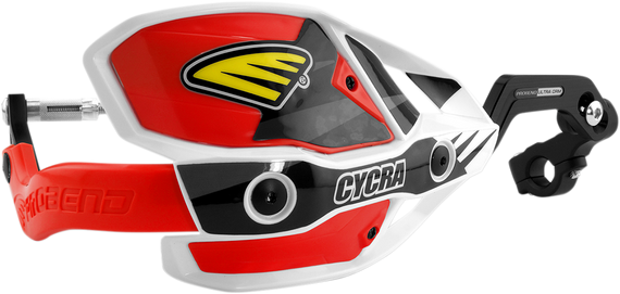 Caracteristicas: Design combines the premium features of Cycra handguards that customers have come to love and depend on The new CRM clamp provides maximum bite to secure the handguards and allows for superior clearance on a wider range of bars New, patented CNC billet machined bar, made from 6061 aircraft quality aluminum featuring a varied wall thickness and slimmer profile New shield design that takes cues from the iconic Cycra Enduro Hand Shield and features a better ergonomic profile, removable dual zone ventilation system and integrated abrasion guard with slimmer profile Also included, the new Powergrip Bar Ends with slotted barrel allow for a more secure bite than ever before Made in the U.S.A.