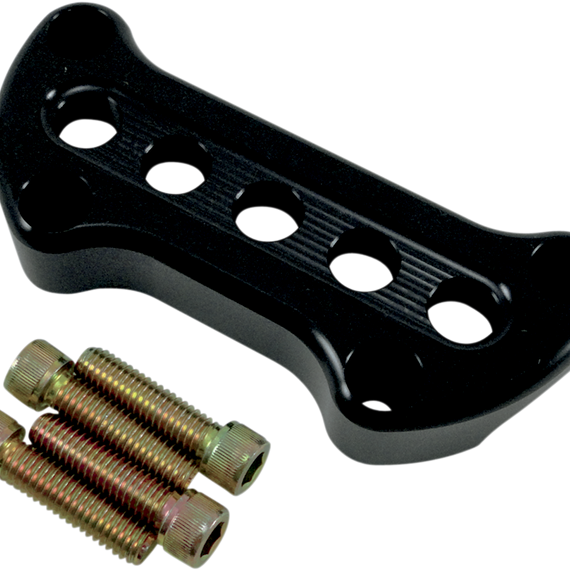 Caracteristicas: Joker's upper handlebar riser clamp is an easy way to give your bike a racer look Replaces your stock H-D Nightster's top clamp with the built-in "speedometer ring" mount - a perfect bar clamp solution when using Joker's speedo sidemount assembly Fully CNC machined racing-styled design is made from solid 6061-T6 bar stock for maximum strength Fit 1" diameter handlebars For models with 3-1/2" on-center and offset mounting holes For use with most 99-17 Harley-Davidson models with 3-1/2" on-center risers and offset mounting holes and 86-19 XL models Made in the U.S.A.