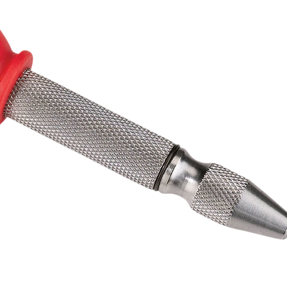 Caracteristicas: This tool automatically marks surface that you are drilling and keeps drill bit located and prevents the drill bit from wandering over the surface High strength steel tip that is spring loaded and marks surface when applying pressure For repetitive punching, drilling, or riveting metal objects Durable plastic handle for better grip and control