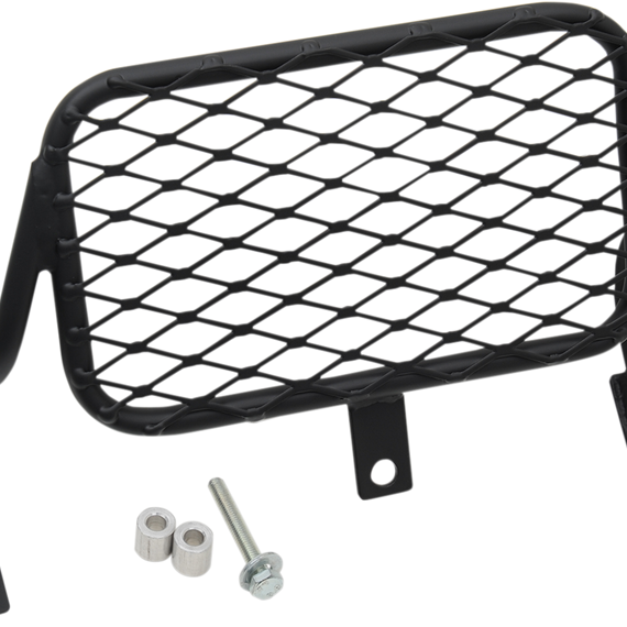 Caracteristicas: Fabricated from mild steel and expanded metal This guard will protect the headlight from flying debris Powder-coated flat black Light weight with limited reduction in light output Easy installation with all required hardware provided Made in the U.S.A.