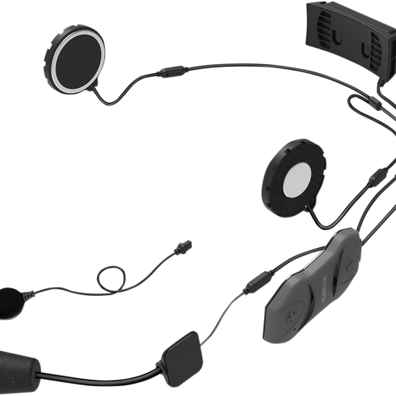 Caracteristicas: Lightweight and ultra slim design for nearly any size helmet Bluetooth® specification v4.1 Bluetooth Intercom up to 900 meters (980 yards) in open terrain Bluetooth® handlebar remote puts the controls where the rider can easily see and use them; fully functional while wearing gloves Four-way conference intercom Also uses the Universal Intercom™ to communicate with all Sena and non-Sena Bluetooth® headsets on the market Voice Prompts Bluetooth stereo headset by A2DP Bluetooth music playback control by AVRCP: play, pause, track forward and track back Sufficient sound level with integrated audio booster Bluetooth hands-free for Bluetooth mobile phones Bluetooth headset or stereo headset for Bluetooth GPS navigation Water-resistant for use in inclement weather Advanced Noise Control™ Music sharing allows talk or share playlists with the four-way intercom function Built-in FM radio tuner with a station scan and save function Up to 10 hours talk time, seven days stand-by time Can be used while charging on road trips Individual volume control for each audio source Firmware upgradeable 10S Smartphone app makes configuration a snap – change settings, set groups of intercom friends and access a Quick Guide; pair up to two mobile phones for convenient hands-free calling 2- Speakers 2- Foam speaker covers 4- Speaker pads 1- Wired boom microphone 1- Wired microphone 1- Boom microphone holder 2- Microphone sponges 1- Battery pack 1- Battery pack holder 1- USB power/data cable (micro USB type) 1- 10R cigarette charger