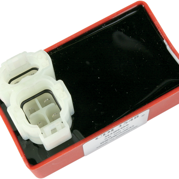 Caracteristicas: CDI box enhancements include one or more of the following: multiple spark, increased rpm redline or altered ignition advance curves Advance curve allows ATV to rev at higher rpm and quicker rate Also may be used to replace defective CDI box on stock machines