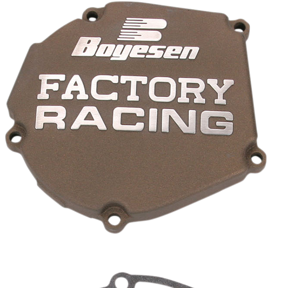 Caracteristicas: Look like a professional with the Factory Ignition Cover Seals properly, guarding inside of engine from dirt and water and outlasts stock covers Boyesen Factory Covers are cast from the highest grade of aluminum and are strong yet lightweight Super-tough, powder-coated finish resists weathering and wear and tear OEM paper gaskets can be reused, or use the supplied O-ring