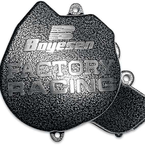 Caracteristicas: Look like a professional with the Factory Ignition Cover Seals properly, guarding inside of engine from dirt and water and outlasts stock covers Boyesen Factory Covers are cast from the highest grade of aluminum and are strong yet lightweight Super-tough, powder-coated finish resists weathering and wear and tear OEM paper gaskets can be reused, or use the supplied O-ring