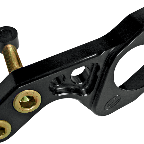 Caracteristicas: A must when using custom fork tube-mounted headlight brackets Mounts super-clean and up close to the frame as possible, below the left side of the tank Ignition switch has no exposed hardware, other than the two alloy frame bolts Fully CNC machined from solid 6061 T-6 aluminum, then given a black anodized finish Made in the U.S.A.