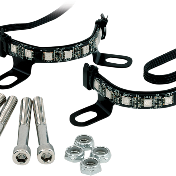 Caracteristicas: The Ciro Fork Mounted Illuminators are the perfect way to set off your front wheel with infinite LED color options Securely bolted to front forks, so no need to worry about lights falling off while riding Half moon shaped illuminators for optimal light dispersion on wheel