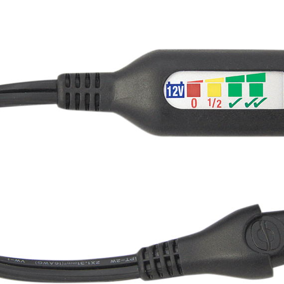Caracteristicas: Monitor charge of any 12V lead-acid battery or confirm if vehicle charging system is working correctly, plugs directly into 12V outlet Length = 10”/25cm 10A fuse (inside connector) 2 automatic Modes – Battery charge level monitor (single LED blink mode) & Charging system test (arrow mode) 4 LEDs cover ‘full to empty’ voltage range of all 12V batteries, including higher voltage AGM for power sport (4th vvLED = 12.7V ) Battery charge level : LED matching charge level blinks every 5 seconds (long term draw less than 0.2 micro Amps) Fast blink mode for first 15 seconds after connection to battery, ideal for testing multiple batteries (e.g. vehicles on showroom floor) Vehicle Charge system : LED arrow mode activates when charge voltage reaches minimum 13.5V (vgreen LED) or ideal range of 14V+ (vv green LED)