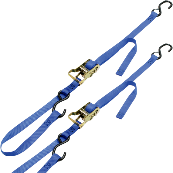 Caracteristicas: Twin pack of ratchet-buckle tie-downs with soft-hook tie-down straps for securing motorcycles, snowmobiles, ATVs and other equipment Same features as the original Rat Pak, but with a soft-hook tie-down strap Vinyl-coated hooks protect finish Durable nylon-web straps Ratchet buckles feature safety locks Made in the U.S.A.