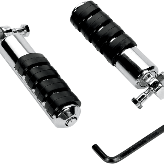 Caracteristicas: Give you a custom look and dampen vibration Interchangeable ends allow use on early or late-style footpeg mounts Hollow-core neoprene inserts are long lasting The Trident design offers a new look to the original ISO™ pegs Pegs without male-mount ends require the use of Kuryakyn footpeg adapters ISO®-Pegs components are not compatible with other footpegs such as the Soft-Ride style.