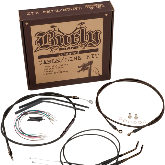 • Kits include extended brake line, extended clutch cable/clutch line, extended throttle/idle cables as required and all necessary wiring