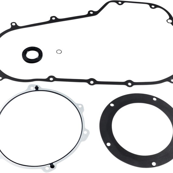 Caracteristicas: Cometic's proprietary AFM (Aluminum Foamette Material) gaskets feature an aluminum core with a chemically blown, compounded nitrile synthetic rubber bonded to the outside Gaskets have resistance to temperatures of more than 2500°F Have an 85% shape-recovering while maintaining strong torque retention - ideal gasket material for machined surfaces Does not require gasket sealer Kits include all gaskets, seals and O-rings required for both the inner and outer primary Made in the U.S.A.