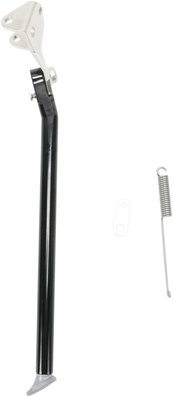 Caracteristicas: Custom designed, strong, lightweight and attractive Ultra-high-strength chromoly mounting bracket Lightweight, high-strength forged aluminum stand Aluminum reinforced high-impact nylon foot at base of stand with no sharp edges Extra-tough black ceramic coating Tucks out of the way of the rider Measure 15-1/2" L Easy installation with no modifications required (mount to stock mounting points)