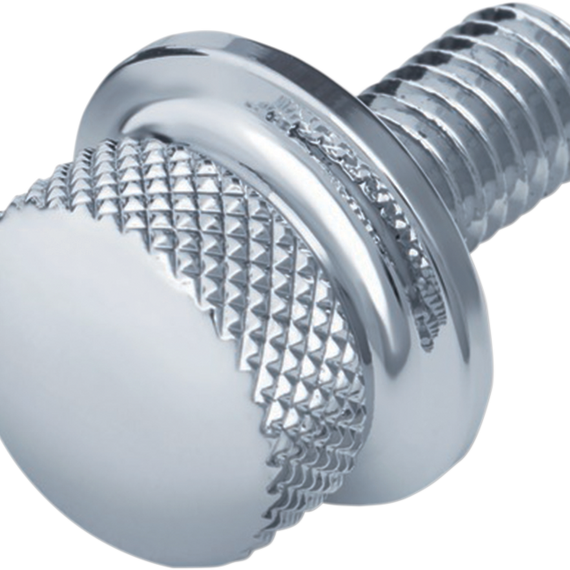 Caracteristicas: Chrome beauty cap covers the stock bracket Knurled chrome knob makes seat removal easy Includes coarse- and fine-thread studs Requires no tools
