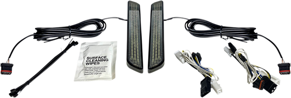 Caracteristicas: Replace the Harley-Davidson® OEM front fork reflectors on models with dual front brake calipers Super bright dual intensity amber LEDs, provide enhanced side visibility with run & turn functions to make you safer on the road Units are pre-taped to adhere in place of OEM reflector Plug and play wire harness for simple installation